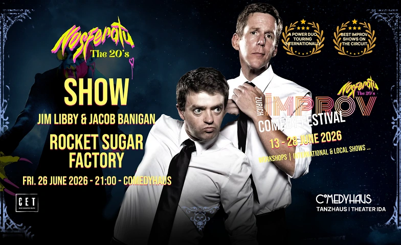 The improv power-duo, Jim Libby (USA) and Jacob Banigan (Canada). Based in Austria, Rocket Sugar Factory tours throughout Europe and North America with their distinct style of impro. Performing sweet and powerful theatrical adventures with humor and bravado, RSF wows audiences with their gracefully fearless antics. Over their combined 50 years in impro, Jim and Jacob have played thousands of shows, worked with the top improvisers around the world, and have won many international comedy competitions, including the Munich Impro Cup, The Berlin Theatresports Cup, and The Austrian National Theatrsports Championships.