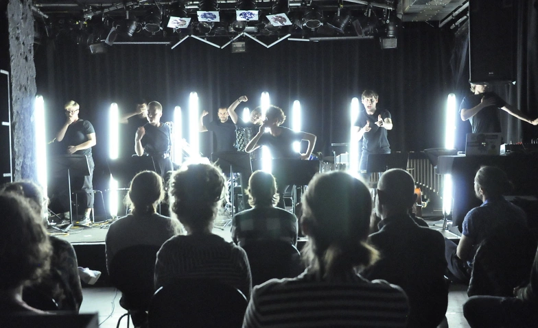 Rama Gottfried schliesst sich mit latenz ensemble in «phantom bands» zusammen und zaubert neue, nicht-menschliche Musiktheater-Ökosysteme, die von Kreaturen bewohnt sind, die in vage punkigen und fliessend raffinierten technischen Subkulturen auftauchen und auftreten. Teils Objekttheater, teils Live-Kino, verwandelt sich das Ensemble ständig – physisch und klanglich – und verkörpert Wesen, die mit hybriden digital-akustischen Stimmen sprechen. Eine Vielzahl von Klängen, Puppenspielen, Videos und instrumentalen Materialien verweben mehrere von Gottfrieds animistisch-ökologischen Stücken: das Computer-Vision-Puppenspiel «Scenes from the Plastisphere», live-foley Ausschnitte aus «Ontopoiesis» und die Premiere von «phantom bands», komponiert für latenz ensemble. Die Performance ist eine experimentelle Methode der nichtmenschlichen Charakterbeziehung, bei der das Publikum in eine neue Gesellschaft mit anderen Lebensformen, Kontexten und Umgebungen eintritt, die sich endlos in neue Möglichkeiten der Form und Erfahrung entfalten.