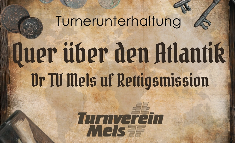 Der Turnverein Mels freut sich, dich im Verrucano zur Turnerunterhaltung 2025 unter dem Motto "Quer über den Atlantik - Dr TV Mels uf Rettigsmission" begrüssen zu dürfen.