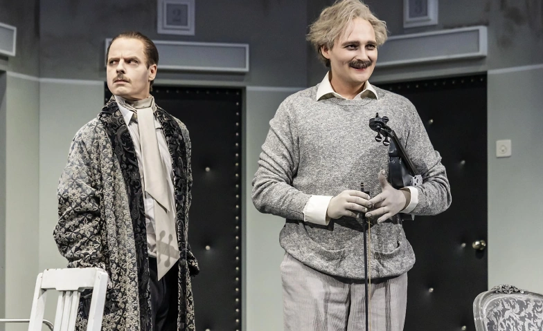Theo Lingen, Hans Christian Blech und Gustav Knuth – die Originaldarsteller der Uraufführung von Die Physiker – sind längst verstorben. Was von ihnen bleibt, sind flüchtige Spuren: Filme, Memoiren, Interviews, Tonaufnahmen, Anekdoten und seltene Fernsehaufzeichnungen von Proben. Die Basler Compagnie hat auf dieser Basis die Zürcher Erstaufführung von 1962 wieder zum Leben erweckt. Die heutigen Spieler:innen übernehmen nicht nur die Rollen der Physiker, sondern verkörpern auch die Schauspieler:innen der Originalbesetzung.