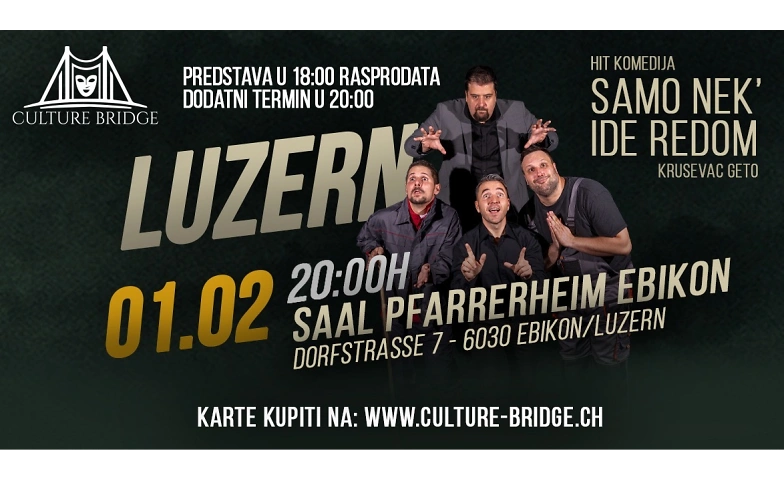 KRUŠEVAC GETO Samo nek' ide redom - Dodatni termin u 20h !!! Saal Pfarrerheim Ebikon, Dorfstrasse 7, 6030 Ebikon Tickets