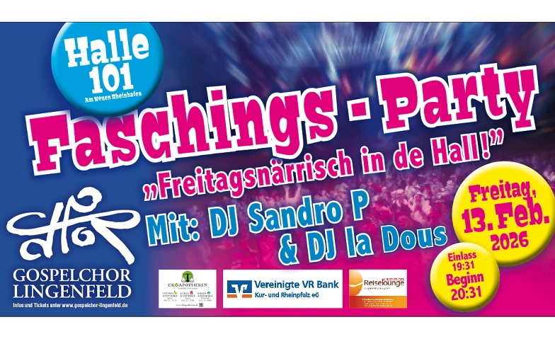 Faschingsfreitag in der Halle 101 - das Party-Highlight!
