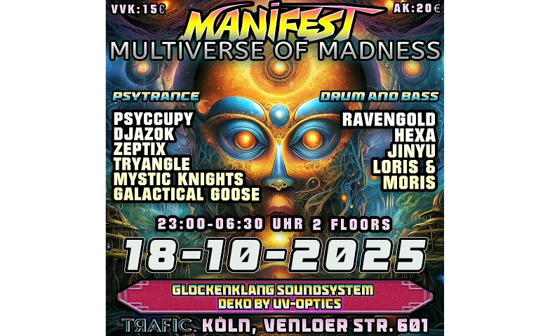 MANIFEST Multiverse Madness / Progressive & Psytrance / D&B samedi, 18 octobre, 23:00 Trafic Club, Köln (DE)