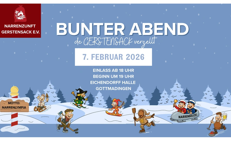 Die Narrenzunft Gerstensack Gottmadingen lädt herzlich ein zum  bunten Abend - de Gerstensack verzellt. Dieses Jahr unter dem Motto Narrenlympia!