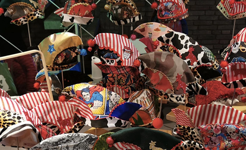 In Kirche, Saal und Hof wird es eine bunte Vielfalt an Kostümen und Accessoires angeboten: originale Theaterkostüme, Designerkappen, pfiffig zu Kostümen umgestaltete Materialien, nostalgische Hüte, 50-80iger Jahre Kleidung, und viele von Hobby-Designern geschneiderte und gefundene Unikate!
