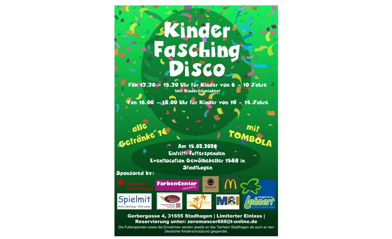 Kinder Fasching Disco Gewölbekeller 1588, Gerbergasse 4, 31655 Stadthagen Billets