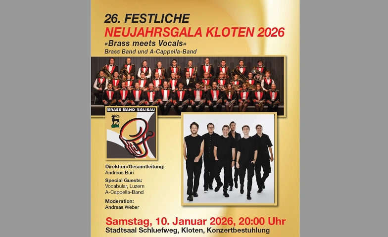 26. FESTLICHE NEUJAHRSGALA KLOTEN 2026; «Brass meets Vocals» est organisé par: