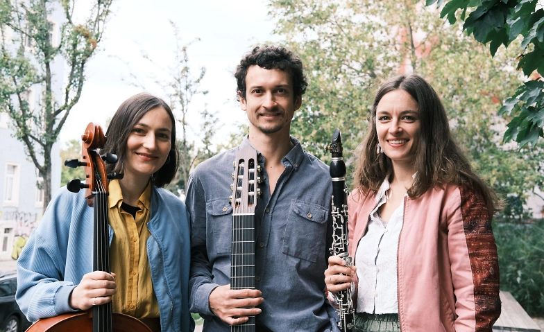 Mit Cello, Gitarre und Klarinette erschafft das Trio Klänge, die von zart-introspektiv bis kraftvoll-rauschhaft und verspielt reichen. Ihr intuitives Zusammenspiel macht jedes Konzert zu einer lebendigen, einzigartigen Erfahrung.
