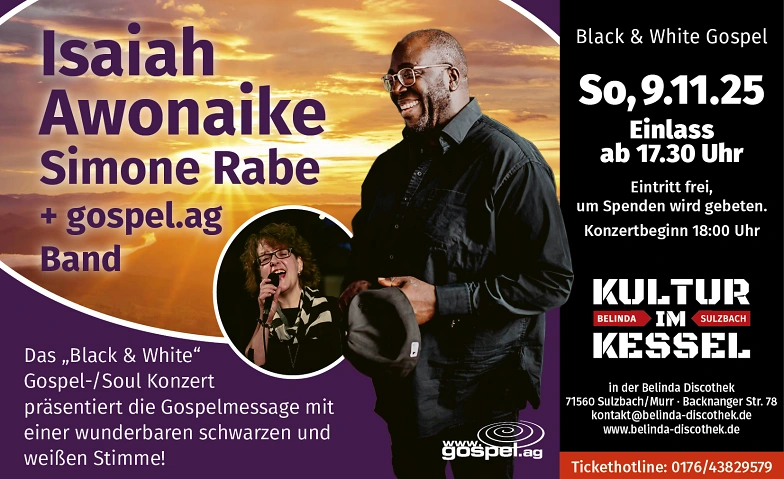 Black und White Gospel: Isaiah Awonaike und Simone Rabe Belinda Discothek, Backnanger Straße 78, 71560 Sulzbach an der Murr Billets