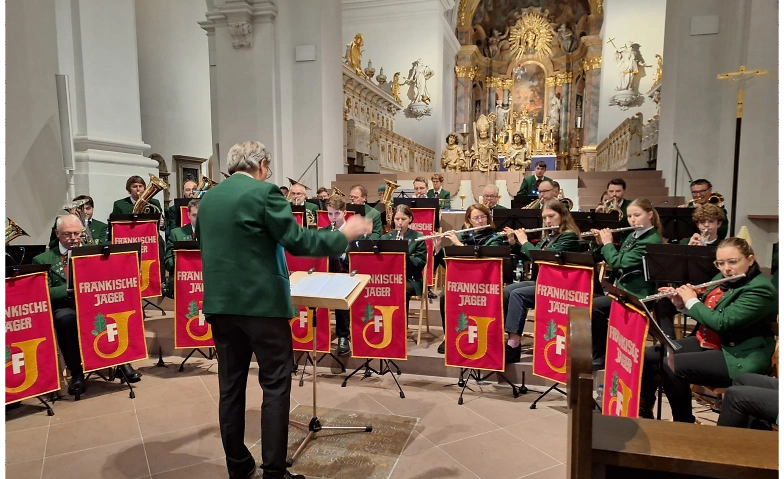 Adventskonzert des Blasorchesters der Fränkischen Jäger aus Gaubüttelbrunn. Auf dem Programm stehen (vor-)weihnachtliche Arrangements von Barock bis Pop, von Bach bis Bryan Adams.
