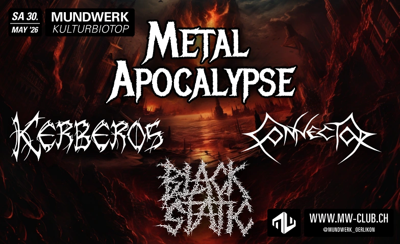 Am 30. Mai treten gleich drei Zürcher Death Metal Bands im Mundwerk auf, die es krachen lassen und auf eine verträumt-vertrackte Reise einladen: KERBEROS, BLACK STATIC und CONNECTOR.