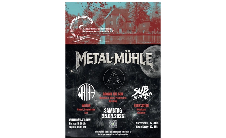 Tickets gibt es bei „DER BUCHLADEN“ in Trittau oder bei https://eventfrog.de/metalmuehle