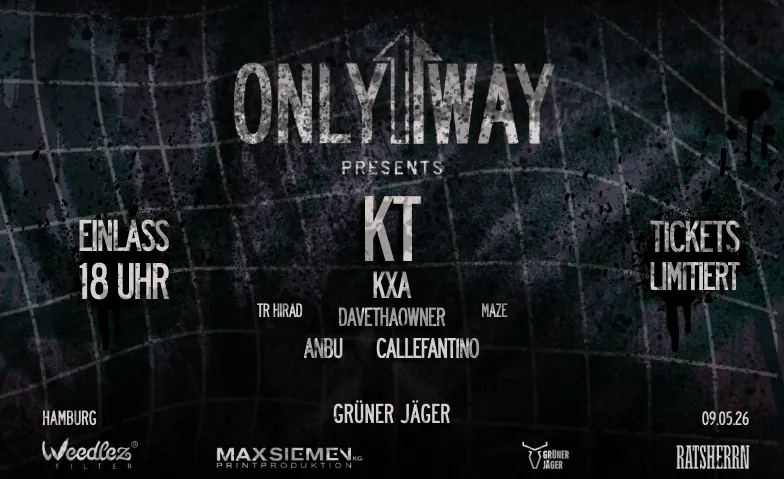 ONLY1WAY ist ein Hamburger-HipHop-Eventformat mit dem Ziel, aufstrebenden Künstler:innen eine professionelle Bühne zu bieten und die lokale Szene aktiv zu fördern. Der Fokus liegt auf authentischer Musik, fairer Präsentation und echtem Community-Gedanken.