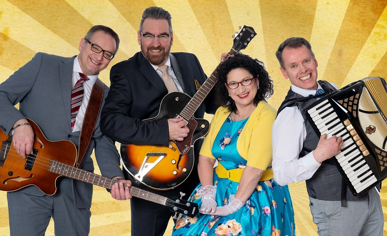 … entführen ihr Publikum mit ihren mitreißenden Interpretationen der Schlagerhits der 50er und 60er Jahre auf eine musikalische Zeitreise. Mit ihrer einzigartigen Mischung aus Nostalgie, Charme und Leidenschaft begeistern die Musiker Ela Kirchner (Gesang), Manne Stauss (Gesang/Akkordeon), Buddy Bosch (Gesang/Gitarre) und Hardy Fritsch (Gesang/Bass) ihr Publikum bei jedem Auftritt. Ela Kirchner, die charismatische Sängerin der Band, verzaubert mit ihrer glockenklaren, kraftvollen Stimme und ihrer authentischen Interpretation der großen Schlagerklassiker.