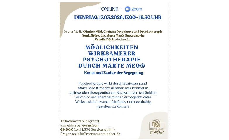 Möglichkeiten wirksamerer Psychotherapie durch Marte Meo Evénements en ligne Billets