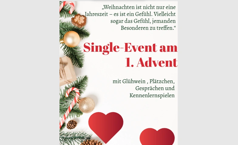 Wir laden dich herzlich ein zu einem besonderen Adventsabend für Singles, bei dem du bei Glühwein, Plätzchen und lockeren Gesprächen neue Menschen kennenlernen kannst.