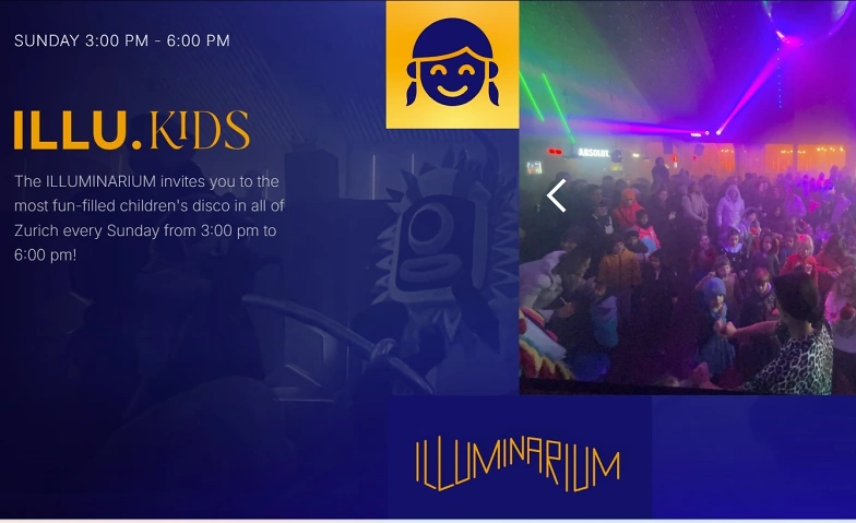 The ILLUMINARIUM invites you to the most fun-filled children's disco in all of Zurich every Sunday from 3:00 pm to 6:00 pm!