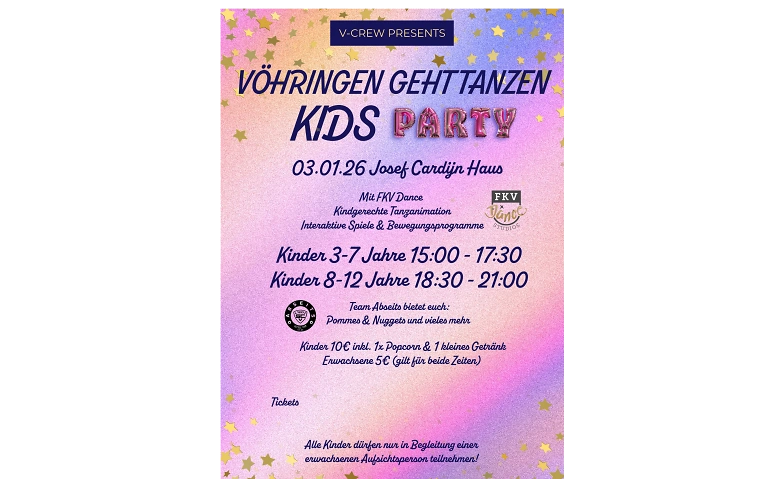 Bereit für Spaß, Musik und ganz viel Bewegung? Bei „Vöhringen geht tanzen – Kids“ erwartet die kleinen Tänzerinnen und Tänzer ein mitreißendes Erlebnis voller Rhythmus, Energie und kindgerechtem Entertainment!