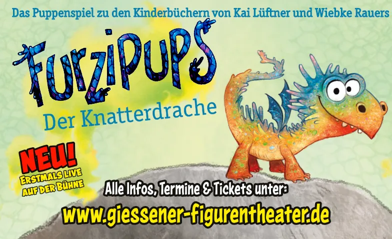 Das Gießener Figurentheater präsentiert das bezaubernde Puppentheaterspiel "Furzipups der Knatterdrache", basierend auf den beliebten Kinderbüchern des Kult-Autors Kai Lüftner und der talentierten Illustratorin Wiebke Rauers.