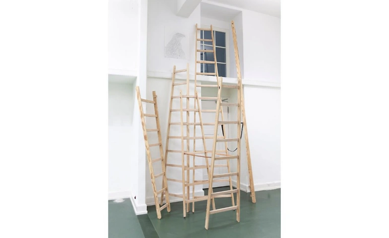 Credits: Omid Arabbay, Flügelschlag (Alman Dream), 2025, Zeichnung, Leiter © Foto: Omid Arabbay