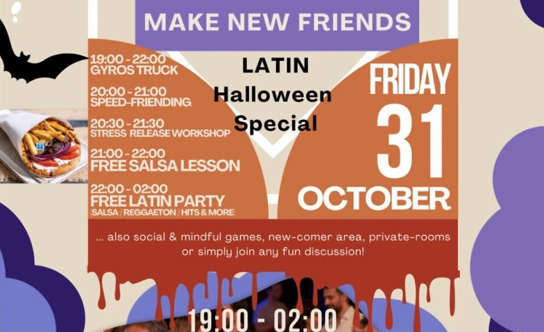 Halloween edition: FREE event with Salsa Lesson, Speed-friending, Resilience Workshop, Latin Party until 2am, Food-truck, mindful games, new-comer area and more!