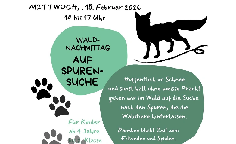 Hoffentlich im Schnee und sonst halt ohne weisse Pracht gehen wir im Wald auf die Suche nach den Spuren der Waldtiere. Daneben bleibt viel Zeit zum Spielen und Entdecken.
