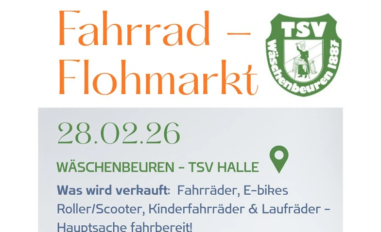 Fahrrad Flohmarkt TSV Halle Wäschenbeuren, Maitiser Straße 16, 73116 Wäschenbeuren Billets