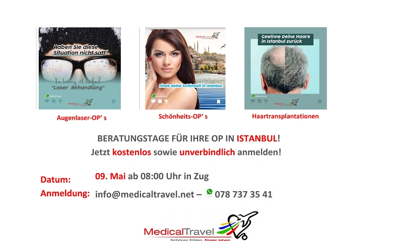 BERATUNGSTAG  am 9. Mai in Zug für Schönheits-Op's und Haartransplantationen für Istanbul