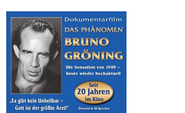 Der Dokumentarfilm „Das Phänomen Bruno Gröning – Auf den Spuren des Wunderheilers“ zeichnet die dramatischen Ereignisse jener Zeit nach: Original Film- und Tondokumente, Archivmaterial, über 50 Zeitzeugeninterviews, dazu aufwendige Spielfilmszenen.