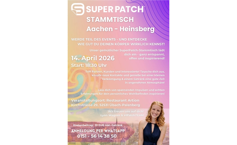 Freue dich auf den SuperPatch Stammtisch Aachen-Heinsberg: gute Gespräche, neue Kontakte und entspannter Austausch in angenehmer Atmosphäre.