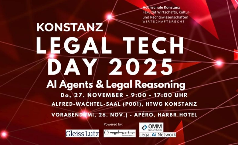 Der Studiengang Wirtschaftsrecht der HTWG Konstanz organisiert am 27. November 2025 den 6. Konstanzer „Legal Tech Day".