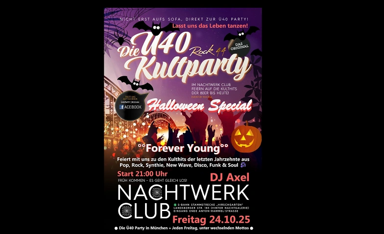 Rock44 ➤ °°FOREVER YOUNG°° » Die große Ü40 Halloween-Kultparty im schaurig dekoriertem Nachtwerk Club mit DJ Axel & einer bunten Mischung der Kulthits der letzten Jahrzehnte aus Pop, Rock, Synthie, New Wave, Disco, Funk & Soul 💃🕺🤸🍹🍻