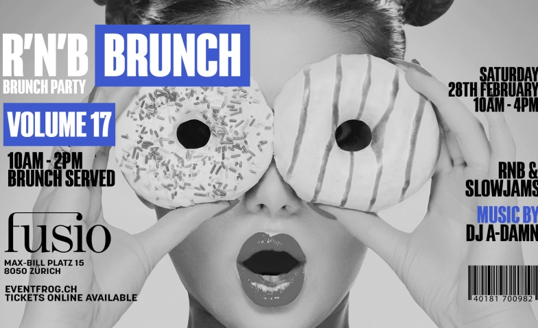 Am 28. Februar steigt zum 17. mal die RNB BRUNCH PARTY im Fusio Zürich. Wir starten um 10:00 Uhr mit einem köstlichen à la carte Brunch während im hintergrund bereits smoothe RNB-Klassiker zu hören sind. Erlebt eine einzigartige Atmosphäre, während unser DJ die heissesten RNB-Hits von damals und heute auflegt. Stündlich wird die Musik lauter und wir starten unsere Brunch Party!