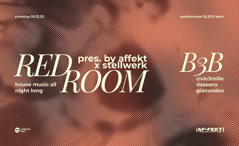 [AF•FEKT] is back — one last time at Stellwerk in Bern this year! We’re once again transforming the venue into the well-known “RED ROOM,” where the music takes center stage.