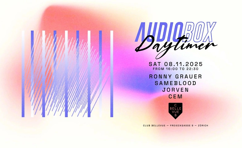Es trifft pulsierende House Musik auf Tageszeiten: ein neues Format, das beweist, dass Clubkultur keine Uhrzeit mehr kennt. Die Macher der AUDIOBOX (Cem & Claudio) wagen den Schritt ins Tageslicht – und laden ein zu einem Day-Clubbing, das die Energie der Nacht in den Nachmittag verlegt. Ganz nach dem Motto: House, Groove & gute Laune – ohne Kater am Sonntag.