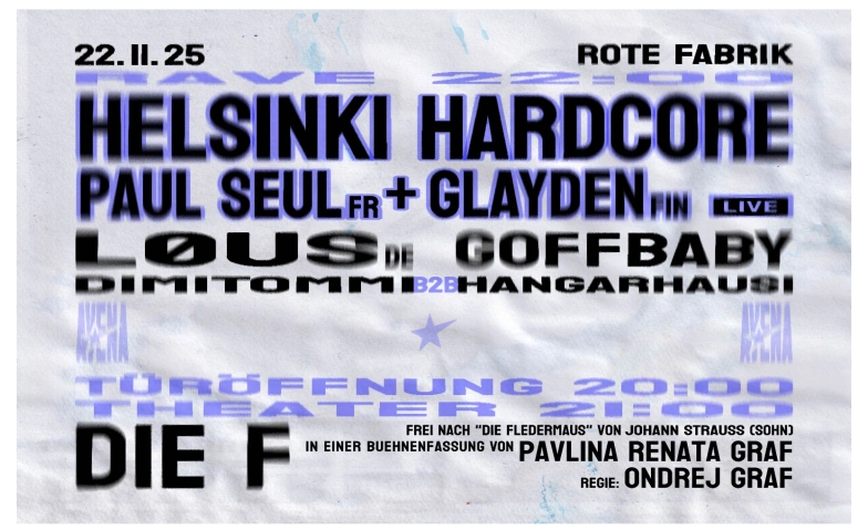 In „Die F“ treffen Walzerklänge auf Basslines, Masken auf Moral. Inspiriert von Johann Strauss’ „Die Fledermaus“ fragt das Stück nach der moralischen Verantwortung der Menschen füreinander – und nach der Lust, sich selbst zu verlieren. Zwischen Rausch, Wahrheit und Täuschung feiert das Ensemble das Theater als Fest – und die Party als Spiegel unserer Zeit.