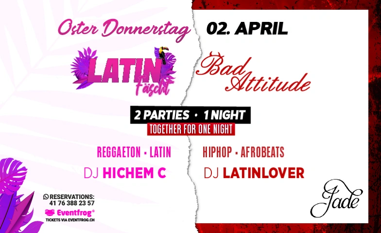 Unter dem Motto „2 Parties – 1 Nacht“ vereinen sich zwei der angesagtesten Eventlabels der Stadt – Latin Fäscht und Bad Attitude – für ein einmaliges Erlebnis. Es ist die letzte Gelegenheit, die unvergleichliche Atmosphäre des Mascotte Clubs zu spüren, zu tanzen, zu feiern und Geschichte zu schreiben. Die Gäste erwartet eine wilde Fusion: Latin Beats & Reggaeton Vibes treffen auf Urban Sounds, Hip-Hop & Afro Tunes. Zwei Welten, ein Club, eine Nacht – die perfekte Symbiose, die Zürich so noch nicht erlebt hat.