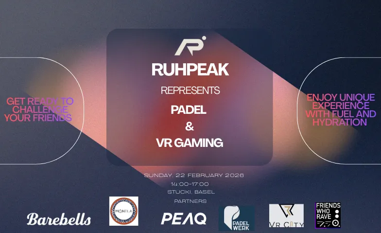 Get ready for an unforgettable evening packed with fun, food, and friends! Ruhpeak is bringing together two of the most exciting activities in Basel: high-energy Padel matches and immersive VR gaming adventures — all in one action-packed event.