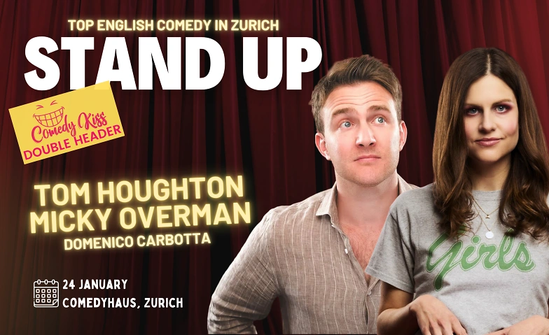 We want to bring the best of English Stand Up Comedy to Zurich, and what better way to do that then having TWO headliners at the best comedy venue in the country! Tom Houghton and Micky Overman will be supported by Domenico Carbotta and hosted by Shane Norton in our Comedy Kiss Double Header show.