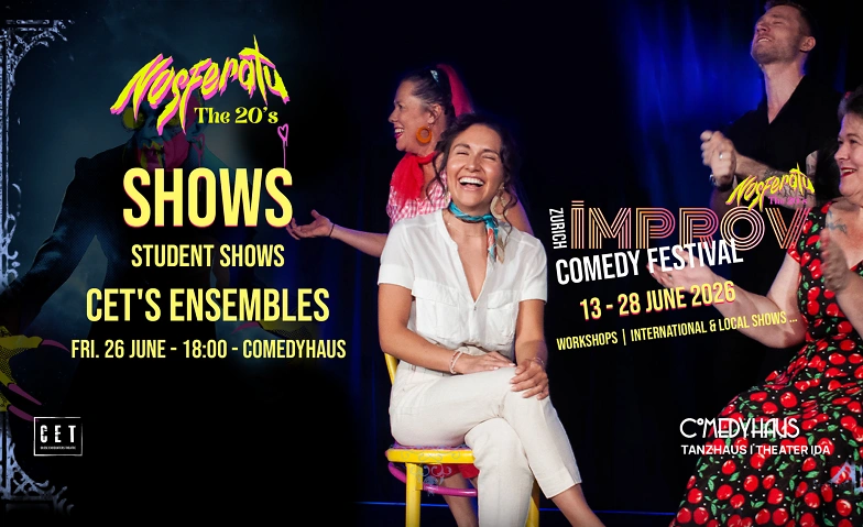 Zurich Improv Festival goes Nosferatu in the 1920s! Coffins meet cocktails, fangs meet flapper dresses, jazz meets the shadows.… and laughter is rising from the crypt. This year’s Zurich Improv Comedy Festival embraces Nosferatu, the 20's as its theme: eerie, gothic, and gloriously ridiculous. Expect silent-movie moods, sharp fangs, and stories born in the dark and made up on the spot. Nothing is scripted, everything is alive — or at least… undead. Join us for a festival where horror meets humor and the night is full of surprises.