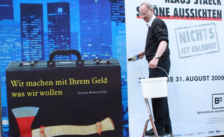 Das Wirken des Künstlers Klaus Staeck ist seit Jahrzehnten eng mit der Berliner Kultur- und Politiklandschaft verbunden. Bereits 1976 fand eine erste Ausstellung in der Ost-Berliner Galerie „Arkade“ große Beachtung. Diese schenkte ihm dann auch die Staatssicherheit in den 80er Jahren, wenn Staeck zu Ausstellungen in anderen Orten der DDR anreiste. Nach seiner Aufnahme in die Akademie der Künste in Ost-Berlin im Jahr 1990 gehörte Staeck dem sogenannten „Zwanzigergremium“ an, das die Vereinigung der beiden Akademien vorbereitete.