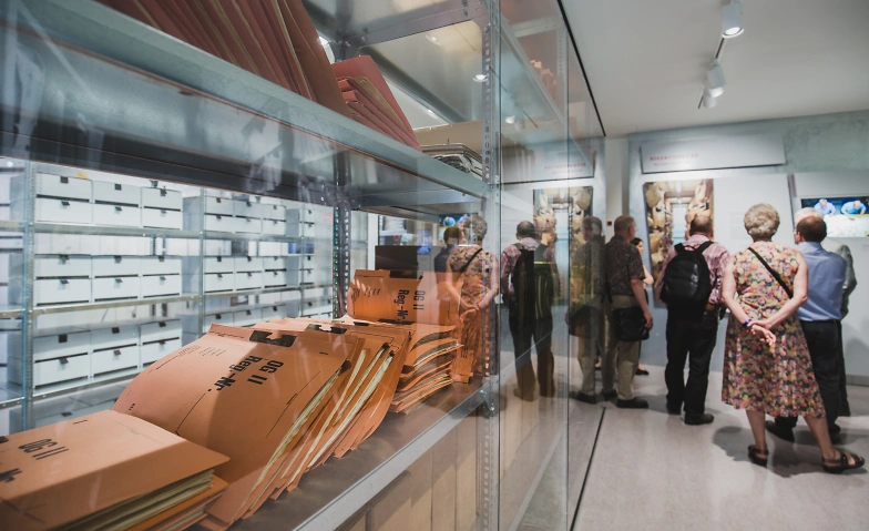 „Ein Monument der Überwachung": Im Stasi-Unterlagen-Archiv lagern 111 Kilometer Akten, in denen vielfach persönliche Daten über Menschen gespeichert sind - gesammelt von der Staatssicherheit. Die Ausstellung „Einblick ins Geheime" macht die Bedeutung dieses Archivs begreifbar.